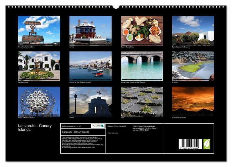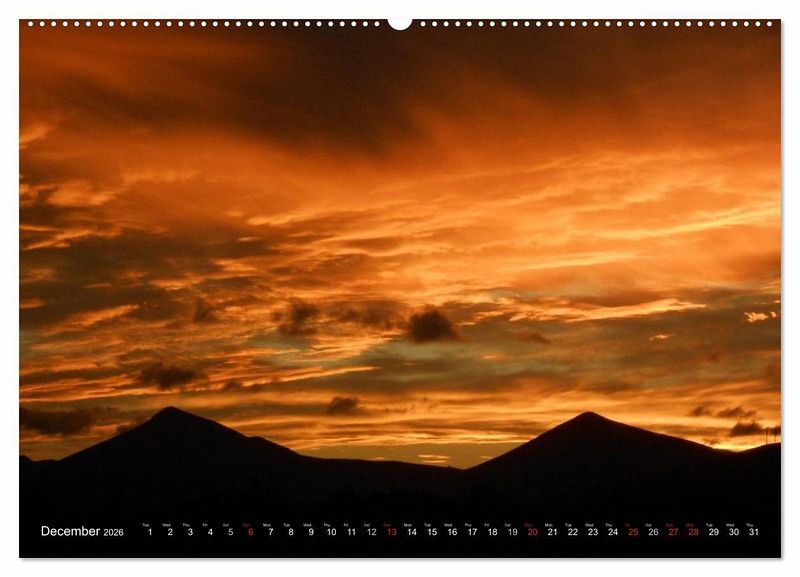 Experience the finest impressions of Lanzarote every month in this calendar. On this unique Canary Island you will find cozy places like Teguise, but also vibrant towns like the capital Arrecife. Volcano lovers will love the National Park with its mountains of fire - the Timanfaya.