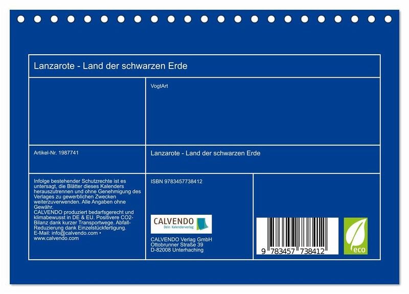 QUALITÄT - Hochwertiger Fotokalender mit 12 wunderschönen Motiven auf lichtbeständigem Bilderdruckpapier, robuste Spiralbindung.NACHHALTIG - deutliche Abfallreduzierung durch bedarfsgerechte Einzelstückfertigung, umweltfreundliches FSC-zertifiziertes Papier, Produktion in Deutschland, klimabewusste Logistik.PERFEKTES GESCHENK - Kalender für Freunde und Familie, für Kinder und Erwachsene, jung und alt, zu Weihnachten, Geburtstag oder zwischendurch.VIELFALT - Bildkalender in verschiedenen Formaten, z.B. DIN A5, DIN A4, DIN A3 sowie DIN A2. Ob Naturmotiv, Gemälde oder Fotos, ideal für ein persönliches Wohlfühlambiente.Lanzarote - Land der schwarzen Erde von Autor(in): VogtArt