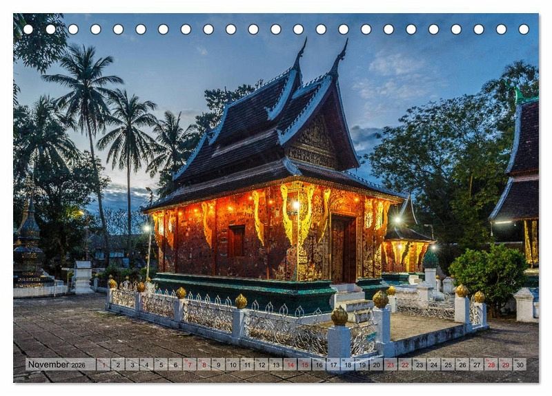 Laos, das jahrzehntelang abgeschottete Kleinod Indochinas, präsentiert sich in diesem Kalender von seiner schönsten Seite: Die Fotos zeigen einsame Bergdörfer, buddhistische Tempel, tosende Wasserfälle und die sagenumwobene Königsstadt Luang Prabang.