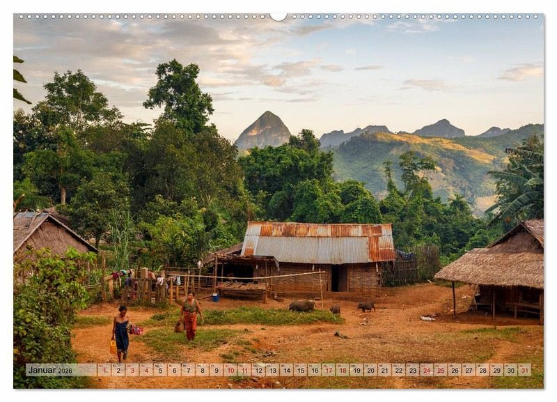 Laos, das jahrzehntelang abgeschottete Kleinod Indochinas, präsentiert sich in diesem Kalender von seiner schönsten Seite: Die Fotos zeigen einsame Bergdörfer, buddhistische Tempel, tosende Wasserfälle und die sagenumwobene Königsstadt Luang Prabang.