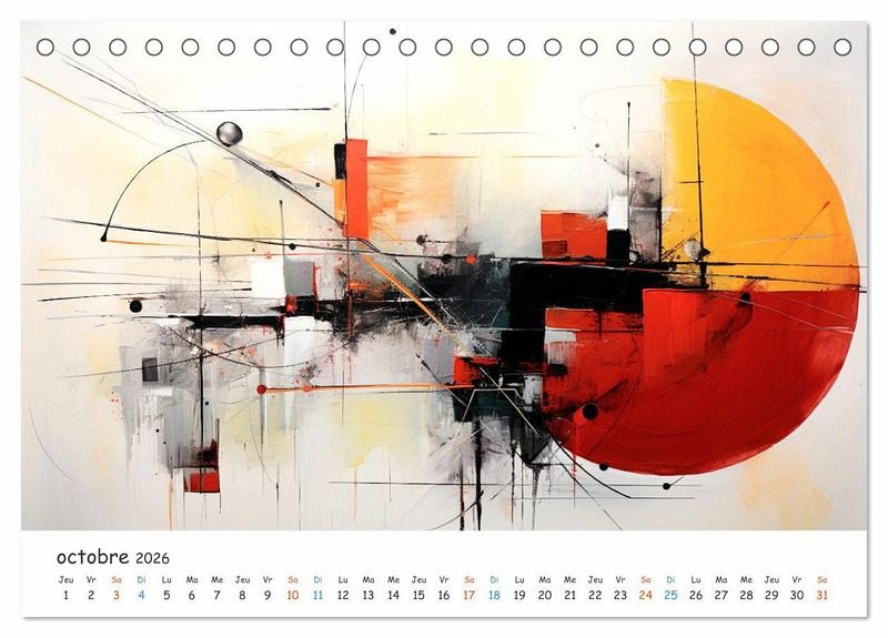 Chaque mois, découvrez une nouvelle oeuvre d'art abstrait qui éveillera vos sens. Laissez-vous emporter par les formes, les couleurs et les émotions qui se cachent derrière chaque illustration réalisée à l'aide de l'IA. Ce calendrier apportera incontestablement une touche d'élégance à votre espace.