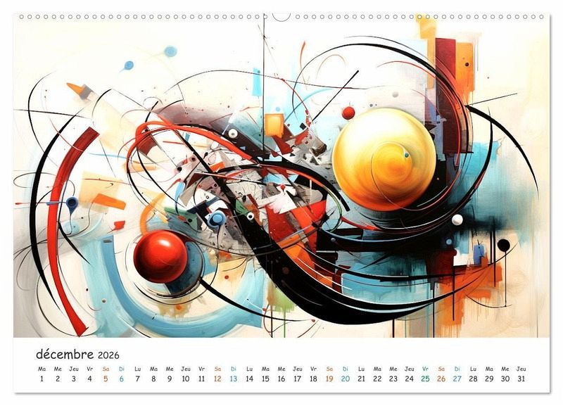 Chaque mois, découvrez une nouvelle oeuvre d'art abstrait qui éveillera vos sens. Laissez-vous emporter par les formes, les couleurs et les émotions qui se cachent derrière chaque illustration réalisée à l'aide de l'IA. Ce calendrier apportera incontestablement une touche d'élégance à votre espace.