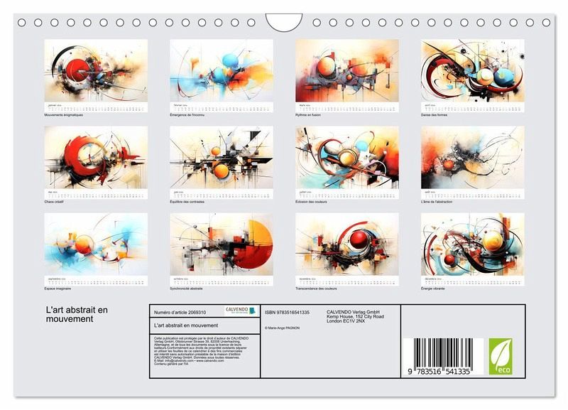 Chaque mois, découvrez une nouvelle oeuvre d'art abstrait qui éveillera vos sens. Laissez-vous emporter par les formes, les couleurs et les émotions qui se cachent derrière chaque illustration réalisée à l'aide de l'IA. Ce calendrier apportera incontestablement une touche d'élégance à votre espace.