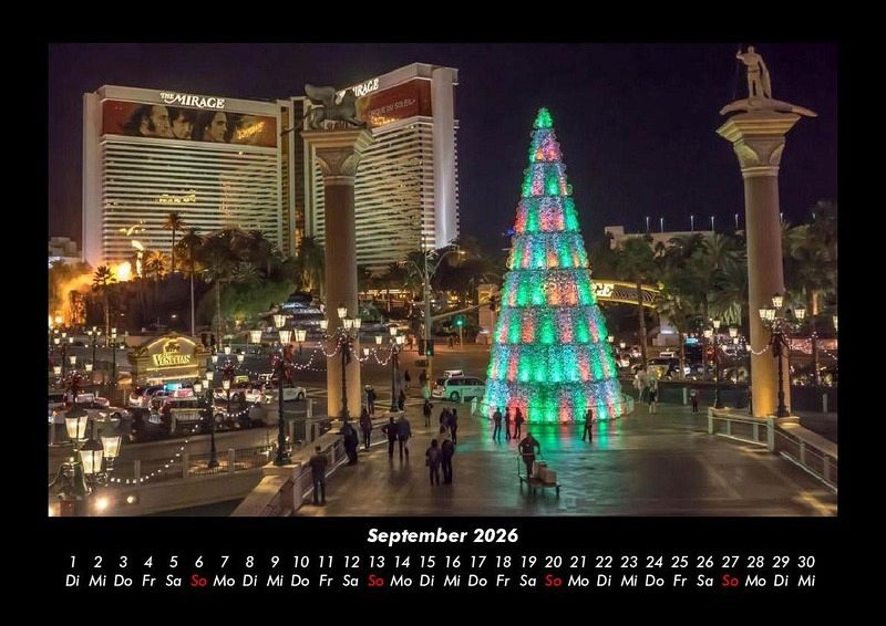 Las Vegas 2026 Motivkalender DIN A3 Vero-Kalender erhalten Sie mit Motiven aus den verschiedensten Themenbereichen wie Natur, Blumen und Landschaft, Tierwelt, Architektur, Reise und Urlaub, Technik, Automobil und Eisenbahn, Emotionen, Sport und Musik. Gedruckt werden die Monats-Kalender aus dem Vero Verlag auf hochwertigem Kalenderbogen in Premium-Qualität und verschiedenen Größen. Die Vielfältigkeit der Motive unserer Foto-Kalender ist dank der Zusammenarbeit mit kreativen Fotografen möglich.