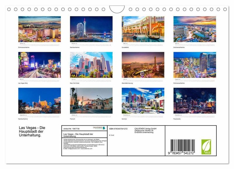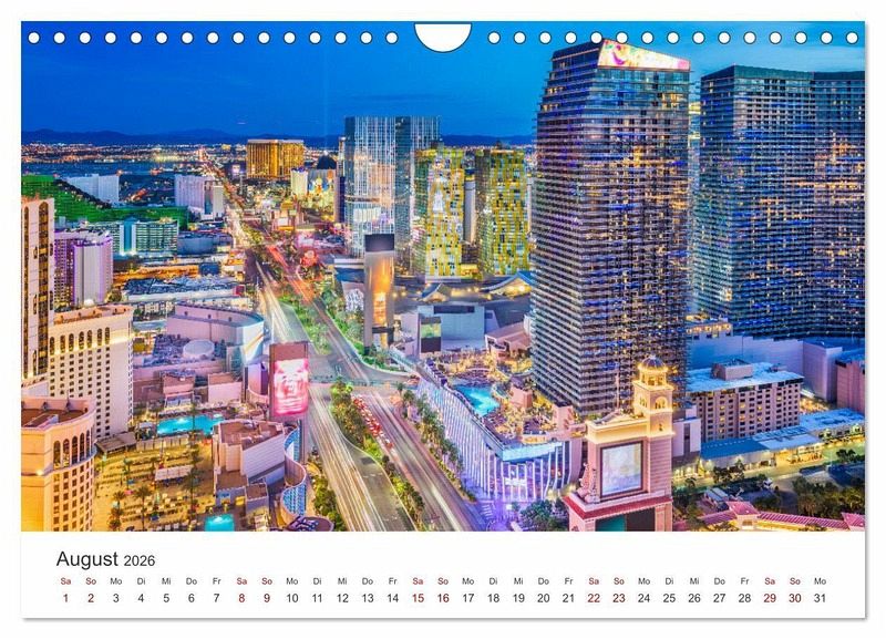 Erleben Sie das aufregende Las Vegas jeden Monat aufs Neue mit unserem atemberaubenden Kalender! Jede Seite bietet Ihnen ein spektakuläres Foto von den glitzernden Casinos, den prachtvollen Hotels und den farbenfrohen Attraktionen. Lassen Sie sich inspirieren von den pulsierenden Straßen, den blinkenden Neonschriften und dem nonstop-Vergnügen.