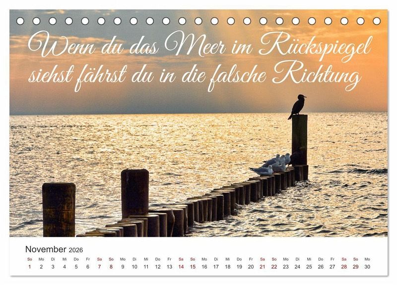 12 traumhafte Momente am Meer begleiten euch Monat für Monat. Mit passenden Sprüchen laden die Motive ein Tage am Meer zu verbringen.