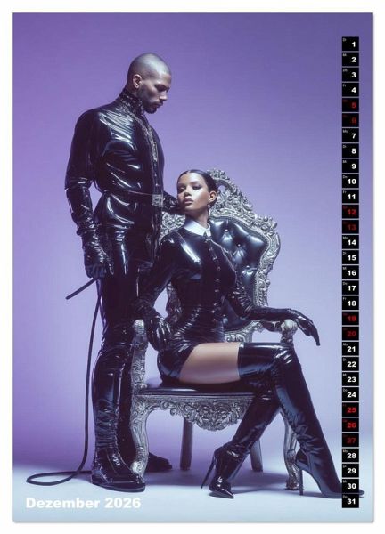 Dieser Wandkalender ist keine Dekoration, er ist ein Statement. Zwölf kunstvoll inszenierte Illustrationen voller Spannung, Dominanz und Hingabe, festgehalten in ästhetischer Perfektion. Lack, Latex und Machtspiele treffen auf provokative Rollenbilder und visuelle Stärke. Ideal für Liebhaber_innen von Fetisch, Fashion und außergewöhnlicher Fotokunst. Ob an der Wand im Atelier, Studio oder Schlafzimmer , jeden Monat ein neuer Reiz. Nicht brav. Nicht gewöhnlich. Einfach ikonisch. Erstellt wurden diese Illustrationen mit KI und Photoshop.