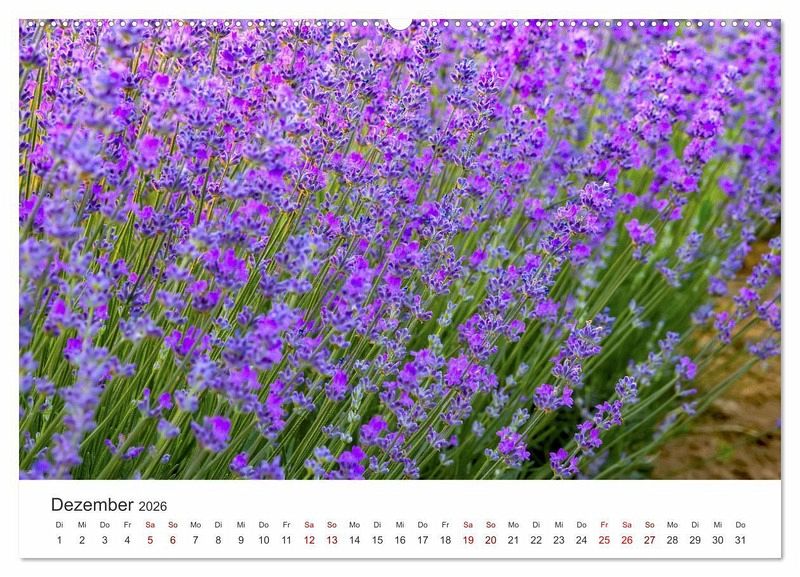 Der Duft von Lavendel verzaubert uns alle. Deshalb reisen viele in die Provence, um sich dort von wunderschönen Lavendelfeldern hinreßen zu lassen. Doch diese traumhaften Felder gibt es nicht nur in der Provence. Dieser Kalender zeigt 12 wunderschöne Aufnahmen der violetten Wunderblume aus der ganzen Welt.