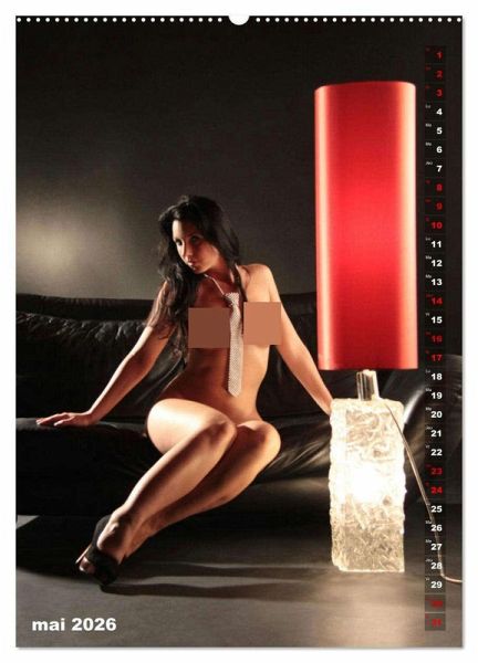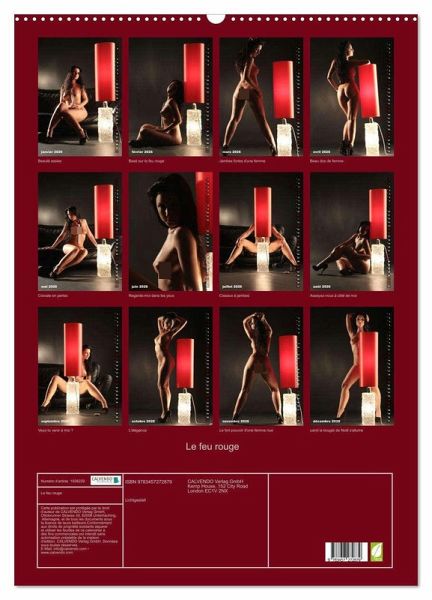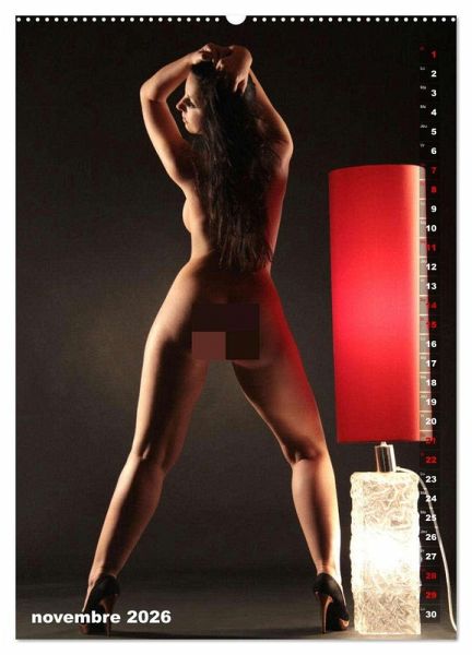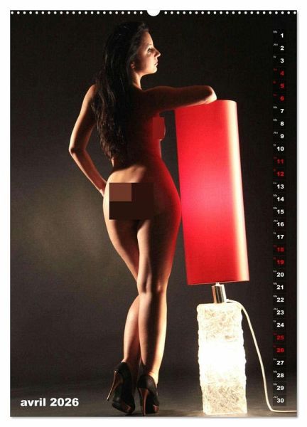 Vous n'avez pas besoin de beaucoup de matériel pour photographier du nu. Une lampe de salon ancienne qui diffuse une lumière rouge et chaude suffit ici. Le modèle pose devant, derrière et à côté de la lampe, la lumière fait le reste. La femme nue est sensuelle et sexy dans toute sa beauté. Calendrier mural de haute qualité avec 12 belles images