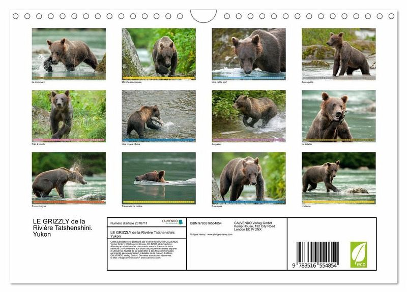 Dans ce calendrier, Philippe Henry nous présente ses plus belles photos de grizzly prises pendant une expédition au Yukon. 13 photos de cet ours majestueux qui est un des plus gros carnivores d'Amérique du Nord. Un calendrier qui sera une décoration idéale pour une classe, pour la chambre d'un enfant ou bien encore pour une salle de jeux.