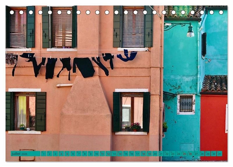 L'Italie sans le linge qui sèche aux fenêtres ne serait plus l'Italie. Sur l'île de Burano voisine de Venise, célèbre pour sa dentelle, les fils à linge tendus entre les fenêtres sur les murs des maisons aux couleurs vives sont comme des guirlandes qui flottent au vent.