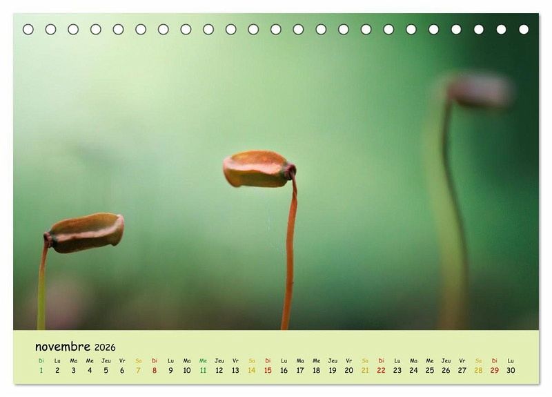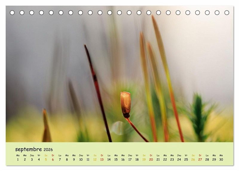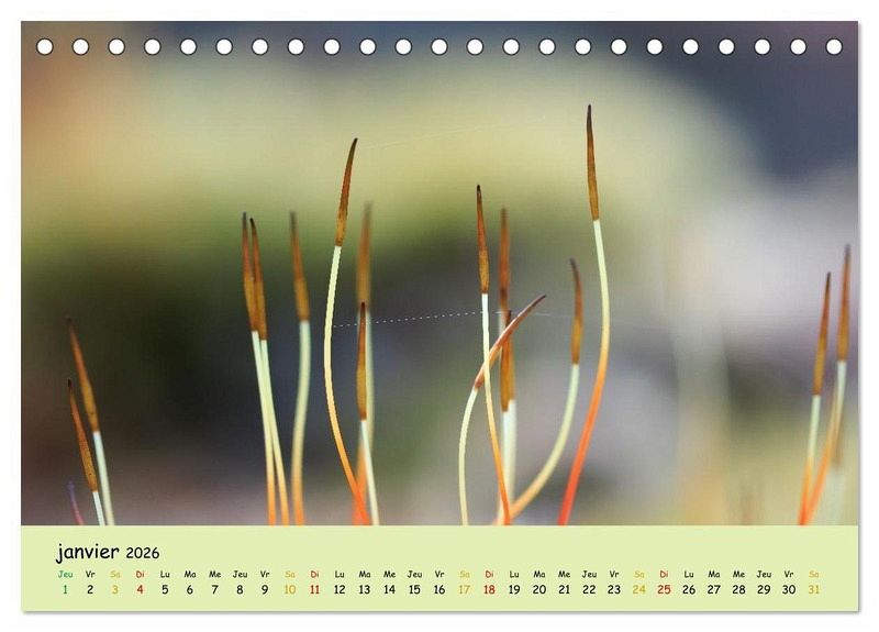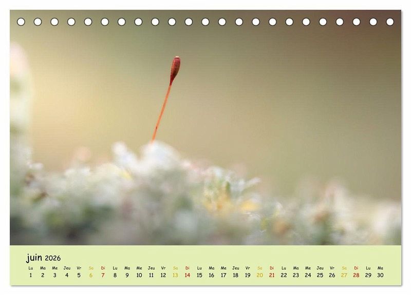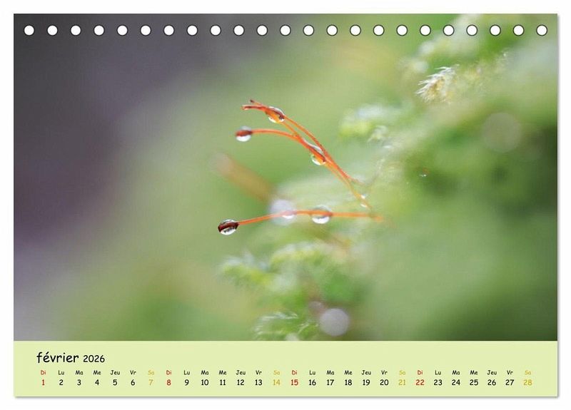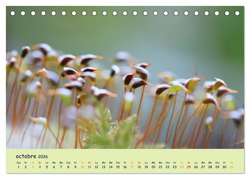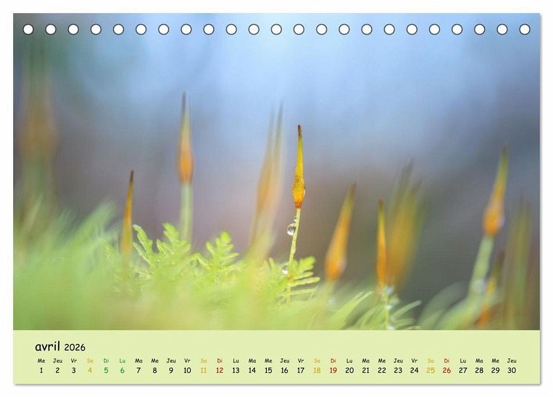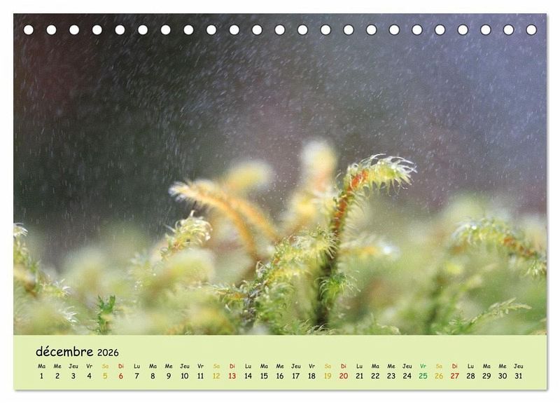 Offrez-vous un voyage fascinant chaque mois avec le calendrier Le monde majestueux des mousses. Chaque page met en lumière la beauté invisible des mousses, révélant les mystères de ces organismes extraordinaires qui peuplent nos forêts et sous-bois. Idéal pour les amoureux de la nature, les curieux de biodiversité ou ceux qui souhaitent découvrir les secrets de nos écosystèmes, ce calendrier est une évasion au quotidien, vous invitant à voir la nature autrement.