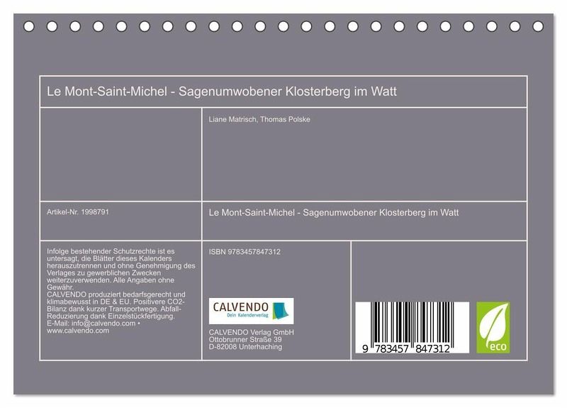 QUALITÄT - Hochwertiger Fotokalender mit 12 wunderschönen Motiven auf lichtbeständigem Bilderdruckpapier, robuste Spiralbindung.NACHHALTIG - deutliche Abfallreduzierung durch bedarfsgerechte Einzelstückfertigung, umweltfreundliches FSC-zertifiziertes Papier, Produktion in Deutschland, klimabewusste Logistik.PERFEKTES GESCHENK - Kalender für Freunde und Familie, für Kinder und Erwachsene, jung und alt, zu Weihnachten, Geburtstag oder zwischendurch.VIELFALT - Bildkalender in verschiedenen Formaten, z.B. DIN A5, DIN A4, DIN A3 sowie DIN A2. Ob Naturmotiv, Gemälde oder Fotos, ideal für ein persönliches Wohlfühlambiente.Rund um den Mont-Saint-Michel, die felsige Klosterinsel im Wattenmeer des Ärmelkanals von Autor(in): Thomas Polske