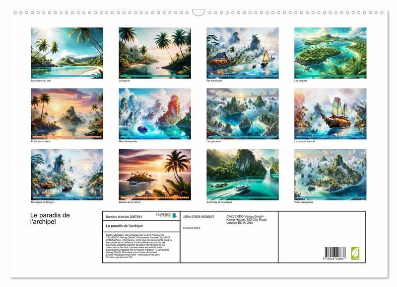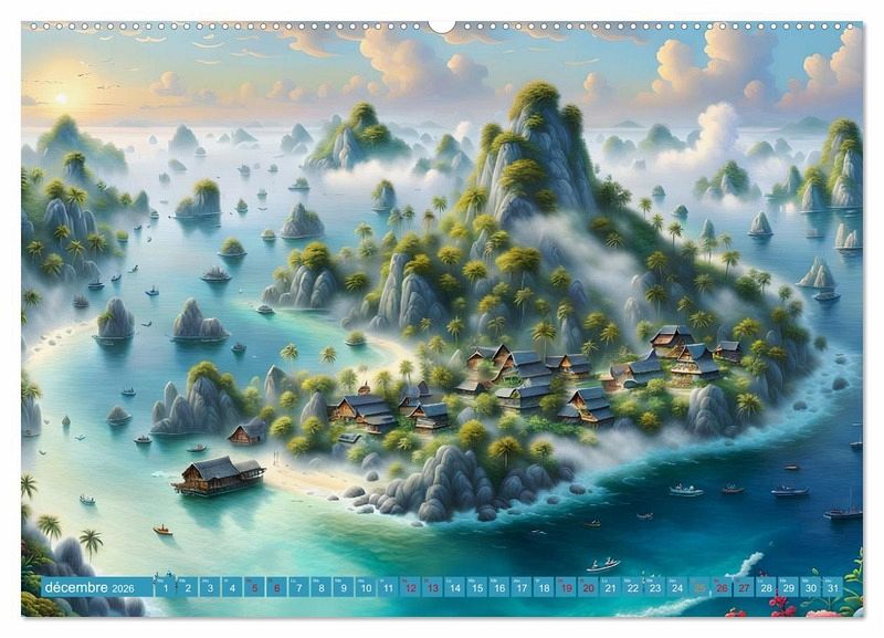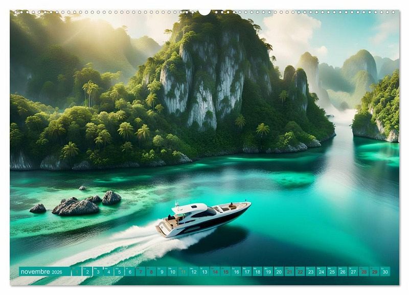 Vivez le voyage à travers le paradis, conçu par l'intelligence artificielle. Chaque mois révèle un panorama époustouflant de l'archipel unique, aussi vivant et détaillé que si vous naviguiez vous-même à travers ce paysage de rêve. Des eaux émeraude aux majestueuses formations calcaires, ce calendrier apporte la beauté exotique directement chez vous.