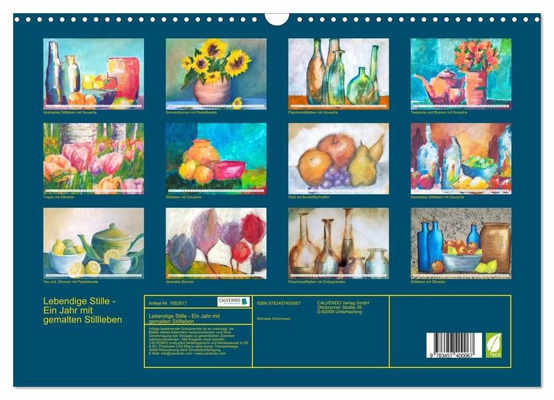 QUALITÄT - Hochwertiger Fotokalender mit 12 wunderschönen Motiven auf lichtbeständigem Bilderdruckpapier, robuste Spiralbindung mit Aufhängebügel.NACHHALTIG - deutliche Abfallreduzierung durch bedarfsgerechte Einzelstückfertigung, umweltfreundliches FSC-zertifiziertes Papier, Produktion in Deutschland, klimabewusste Logistik.PERFEKTES GESCHENK - Kalender für Freunde und Familie, für Kinder und Erwachsene, jung und alt, zu Weihnachten, Geburtstag oder zwischendurch.VIELFALT - Bildkalender in verschiedenen Formaten, z.B. DIN A5, DIN A4, DIN A3 sowie DIN A2. Ob Naturmotiv, Gemälde oder Fotos, ideal für ein persönliches Wohlfühlambiente.In unterschiedlichen Techniken gemalte bunte Stillleben von Autor(in): Michaela Spreider