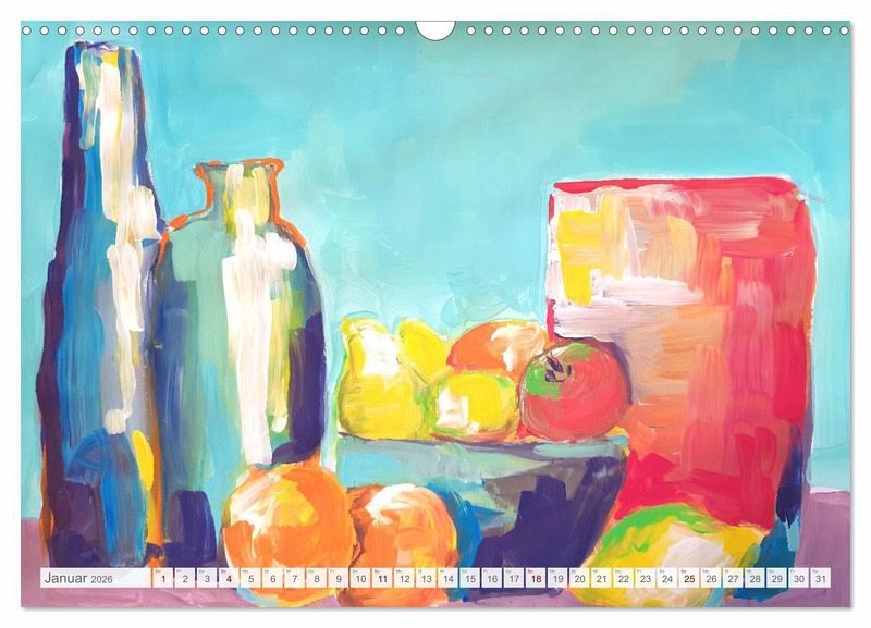 Entdecken Sie die Schönheit der Stille in unserem Kalender 'Lebendige Stille'. Tauchen Sie ein in eine Welt voller Farben und Formen, dargestellt in verschiedenen Techniken wie Gouache, Pastellkreide und Ölkreide. Von lebendigen Teekannen mit Zitronen bis hin zu eleganten Flaschen und frischem Obst - jedes Bild erzählt eine Geschichte und lädt Sie ein, jeden Tag neu zu entdecken. Bringen Sie Farbe in Ihr Leben und lassen Sie sich von der stillen Schönheit unserer Kunstwerke inspirieren."