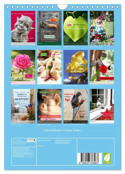 QUALITÄT - Hochwertiger Fotokalender mit 12 wunderschönen Motiven auf lichtbeständigem Bilderdruckpapier, robuste Spiralbindung mit Aufhängebügel.NACHHALTIG - deutliche Abfallreduzierung durch bedarfsgerechte Einzelstückfertigung, umweltfreundliches FSC-zertifiziertes Papier, Produktion in Deutschland, klimabewusste Logistik.PERFEKTES GESCHENK - Kalender für Freunde und Familie, für Kinder und Erwachsene, jung und alt, zu Weihnachten, Geburtstag oder zwischendurch.VIELFALT - Bildkalender in verschiedenen Formaten, z.B. DIN A5, DIN A4, DIN A3 sowie DIN A2. Ob Naturmotiv, Gemälde oder Fotos, ideal für ein persönliches Wohlfühlambiente.Hier gibt es Weisheiten, Aufmunterung, gute Laune und ein bisschen Lebenshilfe mit passenden Fotos garniert von Autor(in): Gisela Kruse