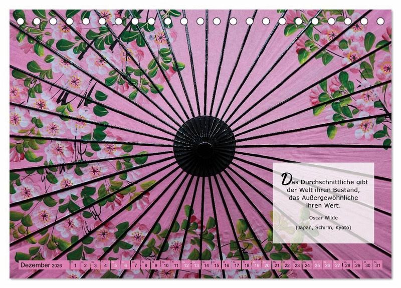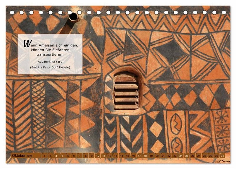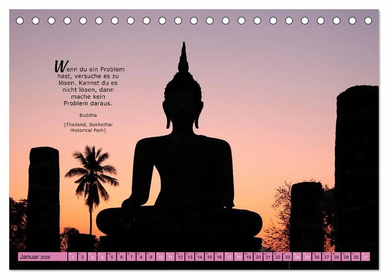 Tauchen Sie ein in die faszinierende Welt der Weisheiten. Jeden Monat erwartet Sie eine neue, tiefgründige Erkenntnis aus verschiedenen Kulturen und Traditionen, die Ihren Alltag mit wertvollen Perspektiven bereichert. Von den beruhigenden Gedanken der asiatischen Zen-Meditationen bis hin zu den kraftvollen Sprichwörtern der afrikanischen Traditionen - dieser Kalender bietet Ihnen eine tägliche Dosis Inspiration und Reflexion. Lassen Sie sich von globalen Weisheiten führen und entdecken Sie die universellen Wahrheiten, die uns alle verbinden. Lassen Sie sich von der Vielfalt menschlicher Gedanken inspirieren. Die passenden Fotografien hat die Reisefotografin Gabriele Gerner auf mehreren Reisen um die Welt für Sie eingefangen. Viel Spaß damit!