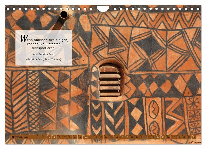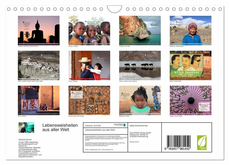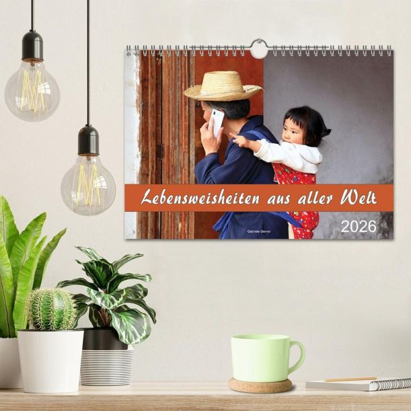 Tauchen Sie ein in die faszinierende Welt der Weisheiten. Jeden Monat erwartet Sie eine neue, tiefgründige Erkenntnis aus verschiedenen Kulturen und Traditionen, die Ihren Alltag mit wertvollen Perspektiven bereichert. Von den beruhigenden Gedanken der asiatischen Zen-Meditationen bis hin zu den kraftvollen Sprichwörtern der afrikanischen Traditionen - dieser Kalender bietet Ihnen eine tägliche Dosis Inspiration und Reflexion. Lassen Sie sich von globalen Weisheiten führen und entdecken Sie die universellen Wahrheiten, die uns alle verbinden. Lassen Sie sich von der Vielfalt menschlicher Gedanken inspirieren. Die passenden Fotografien hat die Reisefotografin Gabriele Gerner auf mehreren Reisen um die Welt für Sie eingefangen. Viel Spaß damit!