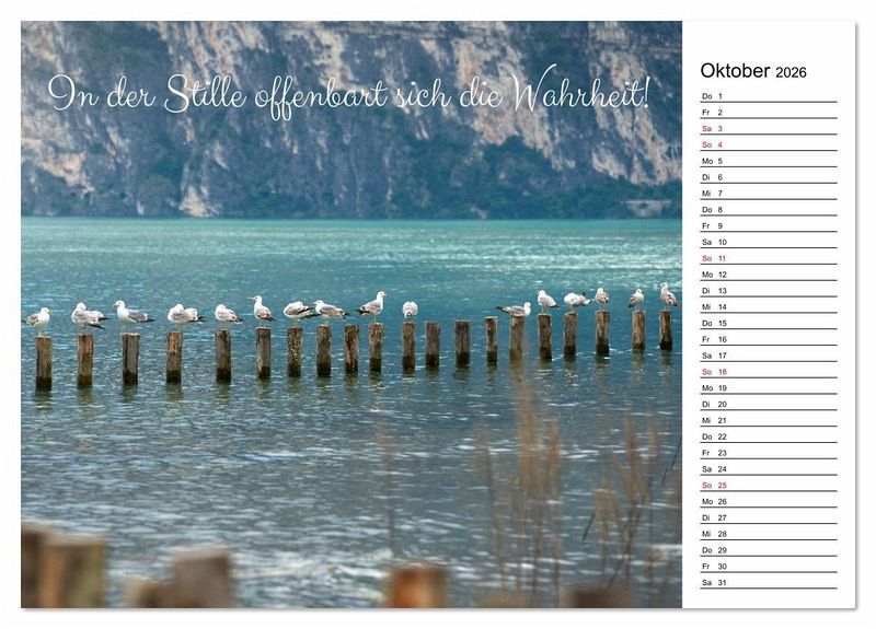 Dieser Motivationskalender und Familienkalender verbindet Möwenfotos mit tiefsinnigen Sprüchen, Zitaten und Lebensweisheiten. Als Spruchkalender für Achtsamkeit, Motivation und innere Ruhe ist er ideal für Zuhause, das Büro oder den stressigen Arbeitsplatz. Mit liebevoll gestalteten Bildern von Möwen und Vögeln lädt der Tierkalender jeden Monat zum Innehalten ein. Ob als Achtsamkeitskalender, Spruchkalender für die Arbeit oder zur persönlichen Motivation - die Kombination aus Tieren und Weisheiten wirkt beruhigend und stärkend zugleich. Der Motivationskalender wurde von www.bihlmayer-media.com erstellt und ist ein besonderes Geschenk für Frauen, Männer, Familien, Kollegen oder als Mitbringsel. Auch als Sprüchekalender mit Zitaten perfekt für jeden!