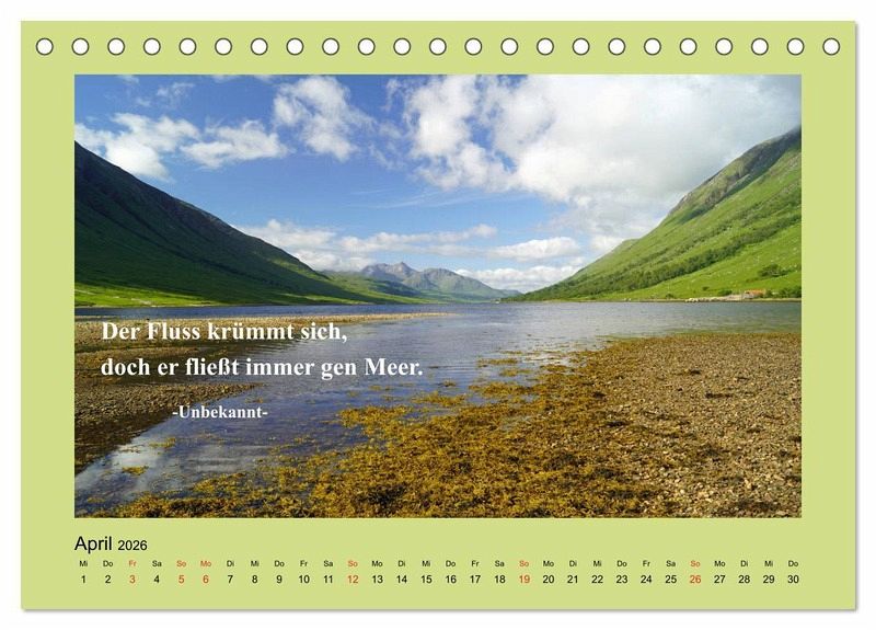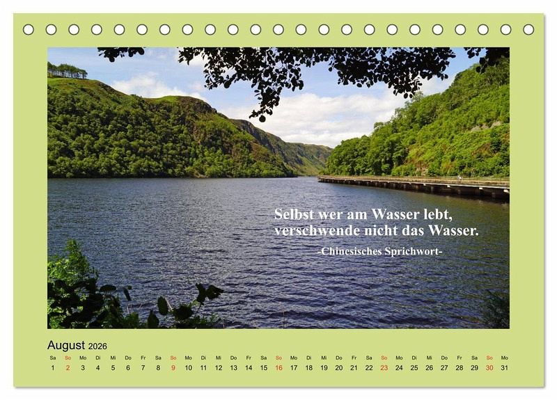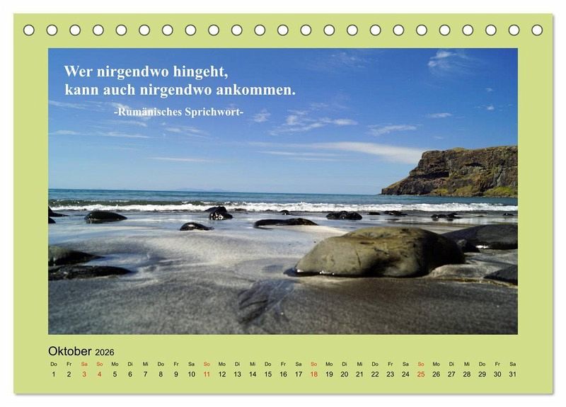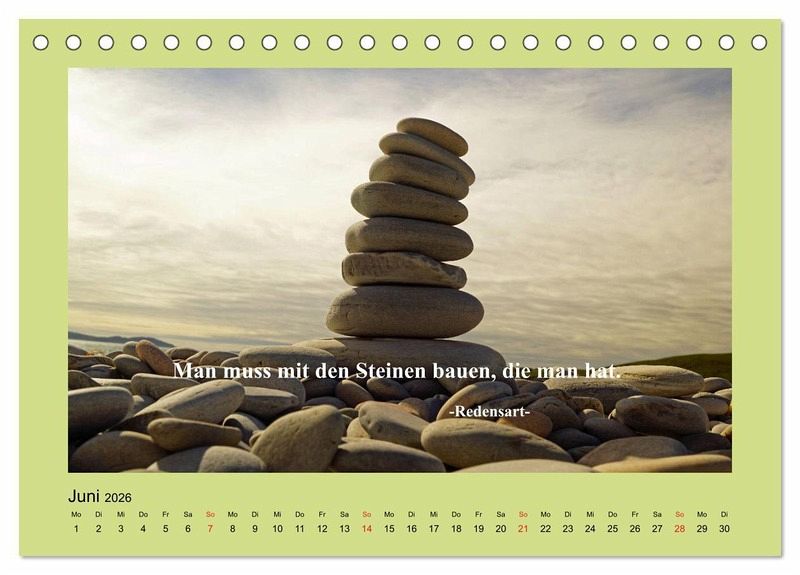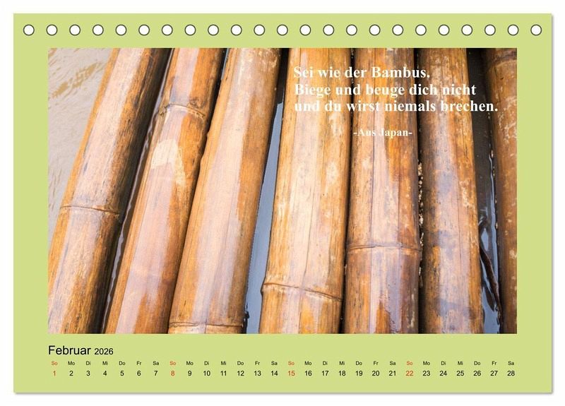 Jeder Blick auf den Kalender ein Genuss für die Augen und den Geist. Lebensweisheiten und Zitate mit sinngebenden Bildern, farbenfroh gestaltet.