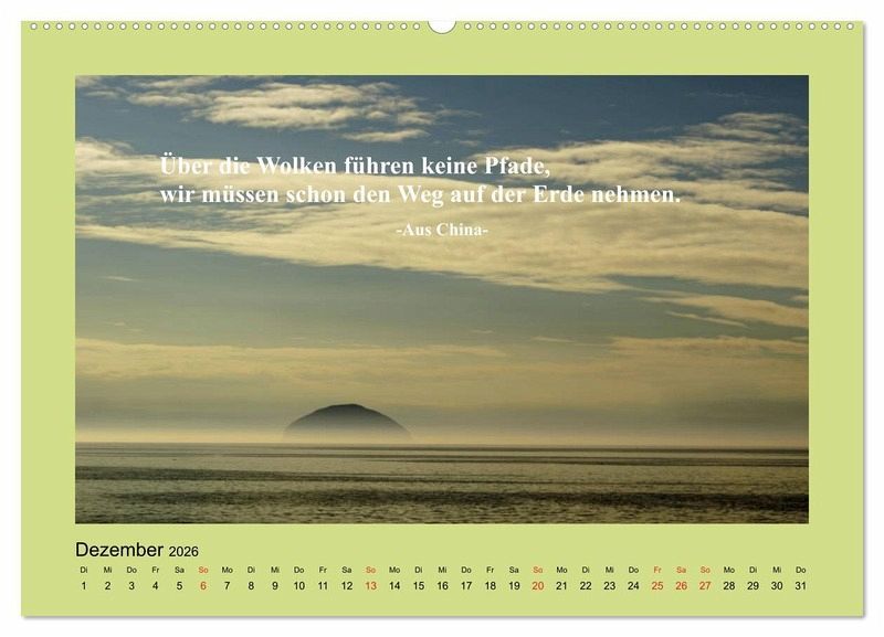 Jeder Blick auf den Kalender ein Genuss für die Augen und den Geist. Lebensweisheiten und Zitate mit sinngebenden Bildern, farbenfroh gestaltet.
