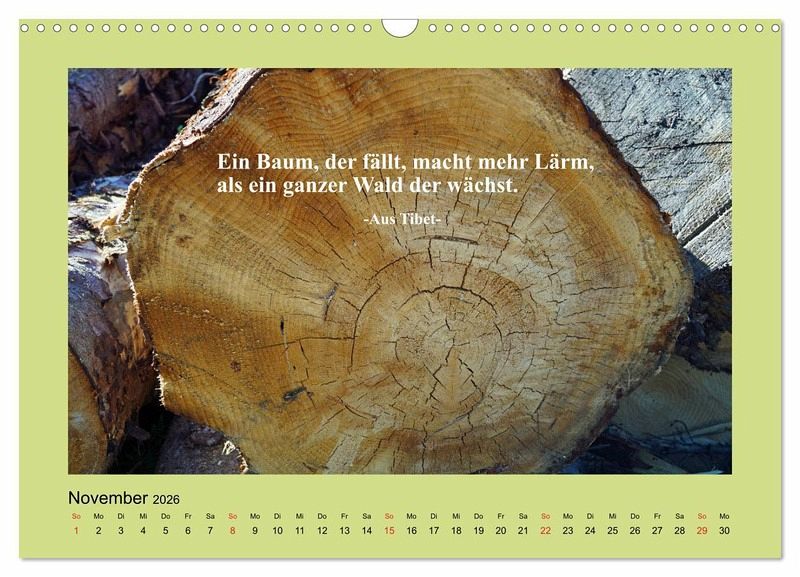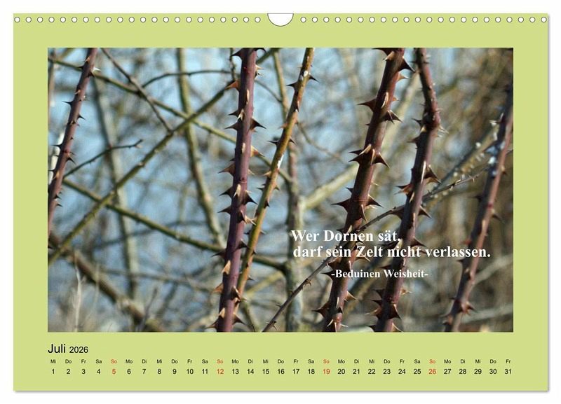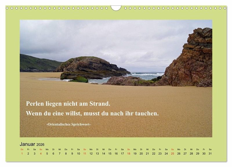 Jeder Blick auf den Kalender ein Genuss für die Augen und den Geist. Lebensweisheiten und Zitate mit sinngebenden Bildern, farbenfroh gestaltet.