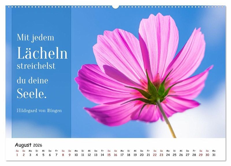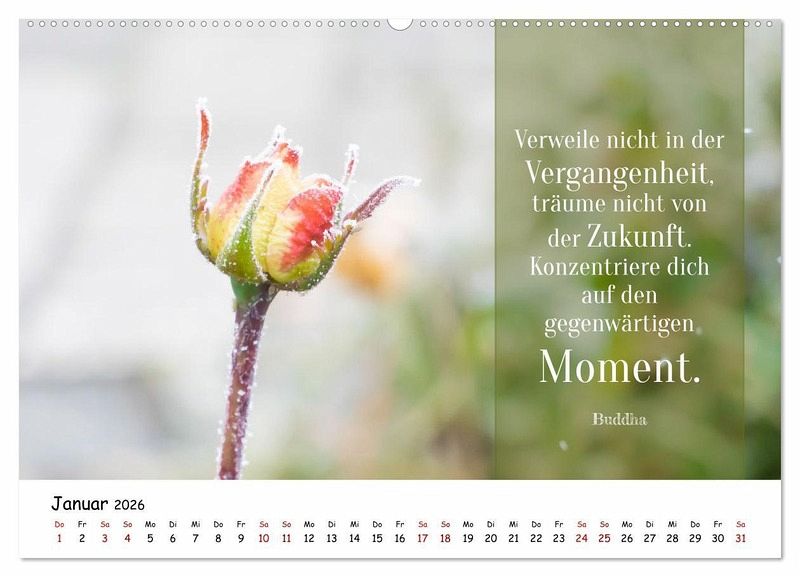 Ein Jahr voller Inspiration. Entdecken Sie diesen einzigartigen Kalender, der Ihnen jeden Monat eine Portion Weisheit, Motivation und Freude ins Leben bringt. Ob kurze Gedanken, inspirierende Worte oder tiefsinnige Zitate - dieser Kalender bietet eine vielfältige Auswahl. Von Glück und Liebe über Erfolg bis hin zu Achtsamkeit - die Texte decken ein breites Spektrum ab und begleiten Sie in allen Lebenslagen. Der Kalender ist nicht nur inhaltlich, sondern auch visuell ansprechend gestaltet. Jede Seite ist ein kleines Kunstwerk, das Sie gerne auf Ihrem Schreibtisch oder an der Wand platzieren werden. Er eignet sich perfekt als Geschenk für Freunde, Familie oder Kollegen. Zeigen Sie Ihre Wertschätzung mit einem Jahr voller inspirierender Botschaften.