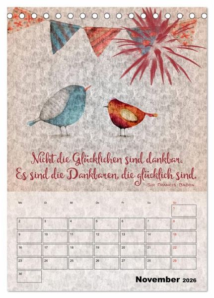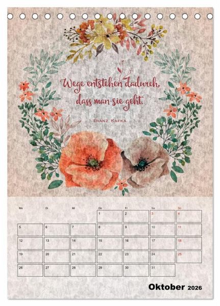 14 Seiten bestehend aus 1 Cover 12 Monatsseiten 1 Indexseite Papprücken mit Aufstellerfunktion.