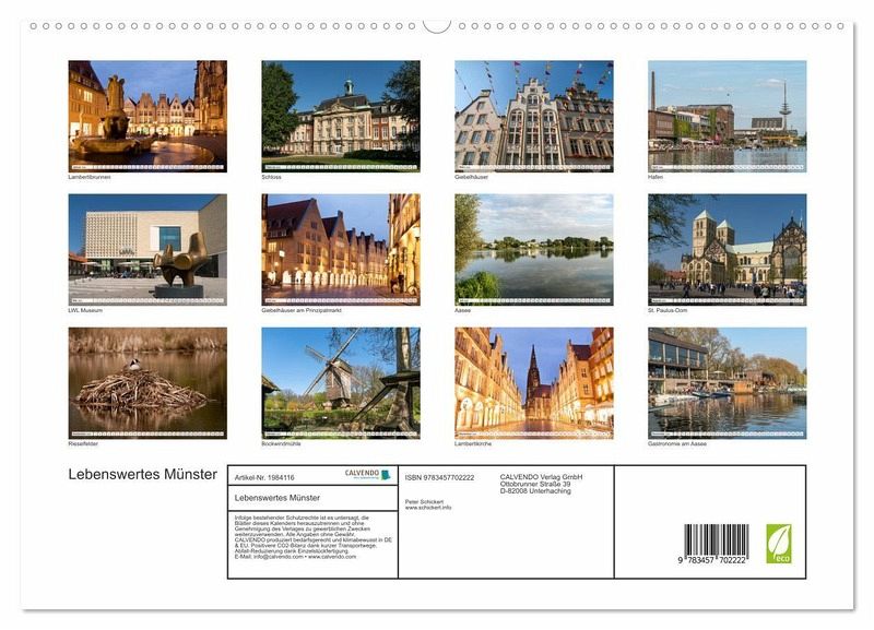 PREMIUM-LINIE - Brillanter Fotokalender mit 12 wunderschönen Motiven, Kunstdruck in Hochglanz in Museumsqualität.QUALITÄT - edle Materialien, stabile Rückwand mit 2 innovativen Einstecktaschen für eine optimale Präsentation an der Wand.NACHHALTIG - deutliche Abfallreduzierung durch bedarfsgerechte Einzelstückfertigung, umweltfreundliches FSC-zertifiziertes Papier, Produktion in Deutschland, klimabewusste Logistik.PERFEKTES GESCHENK - Kalender für Freunde und Familie, für Kinder und Erwachsene, jung und alt, zu Weihnachten, Geburtstag oder zwischendurch.Die wunderbare Stadt Münster in einem Kalender vom Reisefotografen Peter Schickert. von Autor(in): Peter Schickert
