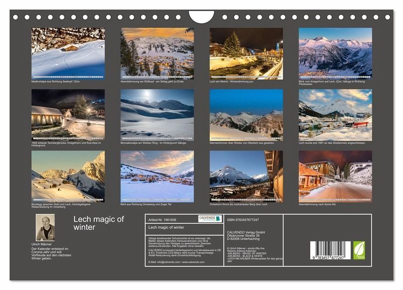 Lech als "Best of the Alps" bezeichnet, lockt seit über einem Jahrhundert Wintersportler und Urlauber aus aller Welt für fünf Monate zum Arlberg. Vom hochalpinen Tiefschneefahren bis zum Wandern in traumhafter Winterlandschaft, ist Genuss am Berg und im Schnee für alle garantiert. Das Ende von Corona und die Freude auf eine neue Saison waren Anlass für diesen Kalender.
