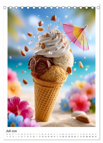 Zwölf Monate, zwölf unwiderstehliche Versuchungen. Dieser Kalender ist eine Hommage an den süßen Genuss - mit liebevoll inszenierten KI-Bildern von Eiscreme, Desserts und coolen Drinks, die nicht nur das Auge verwöhnen. Von kunstvoll geschichteten Donuts und Eis, über Pancakes mit Vanilleeis und goldigem Sirup, bis hin zu fruchtig-frischen Frühlingsbechern mit Erdbeeren oder prickelnden Longdrinks mit Sekt und Eis. Jeder Monat ist ein Fest für Genießer. Perfekt für Naschkatzen, Eiscreme-Liebhaber , -Liebhaberinnen und Genussmenschen.
