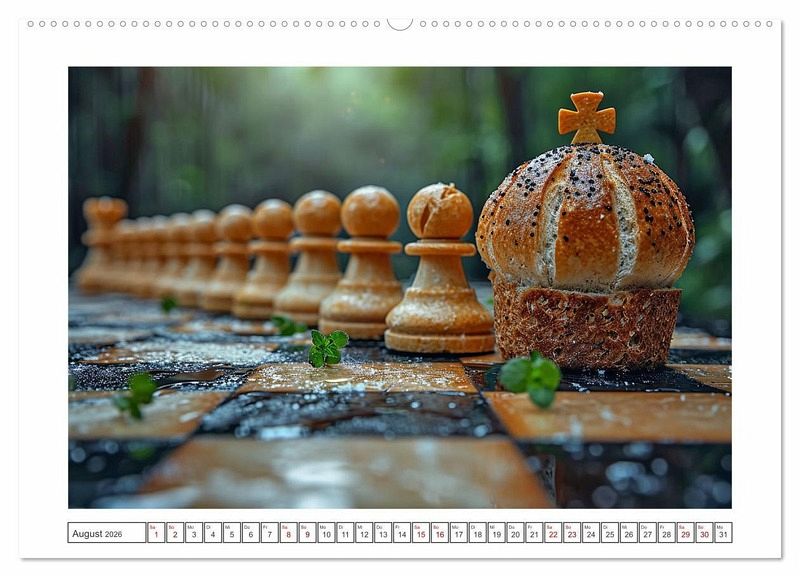 Tauchen Sie ein in die faszinierende Welt des Schachs - aber vergessen Sie die klassischen Figuren! Unser einzigartiger Kalender mit KI generierten Motiven präsentiert Schach auf eine ganz neue Weise: mit leckeren Lebensmitteln. Jeder Monat zeigt ein Schachbrett, auf dem sich Früchte, Süßigkeiten oder Backwaren in spannenden Partien messen.