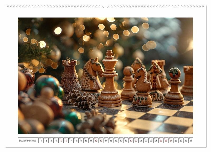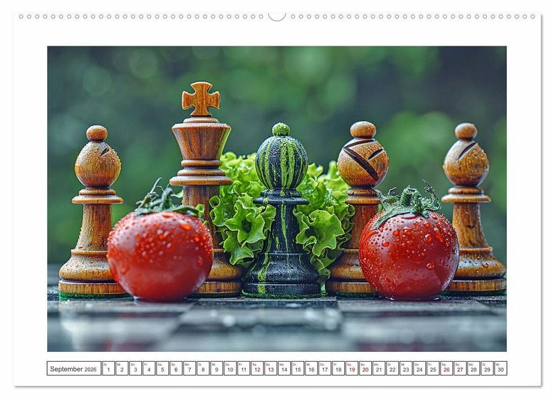 Tauchen Sie ein in die faszinierende Welt des Schachs - aber vergessen Sie die klassischen Figuren! Unser einzigartiger Kalender mit KI generierten Motiven präsentiert Schach auf eine ganz neue Weise: mit leckeren Lebensmitteln. Jeder Monat zeigt ein Schachbrett, auf dem sich Früchte, Süßigkeiten oder Backwaren in spannenden Partien messen.