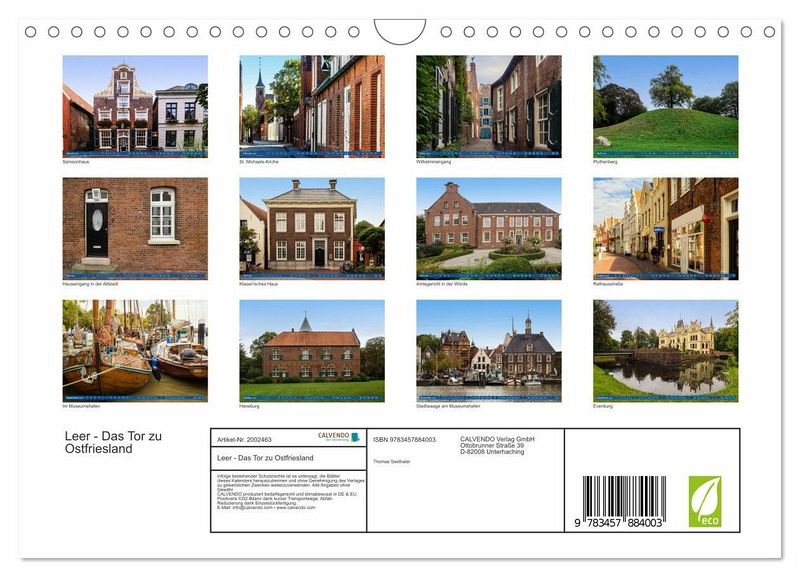 Leer, die sympatische Stadt im äußersten Nordwesten Deutschlands, liegt idyllisch eingeschmiegt zwischen den beiden Flüssen Leda und Ems. Eine wunderschöne Altstadt mit alten Bürgerhäusern und malerischen Gassen, dazu der Museumshafen an der idyllischen Uferpromenade, das alles zeigt dieser Kalender vom Tor Ostfrieslands.