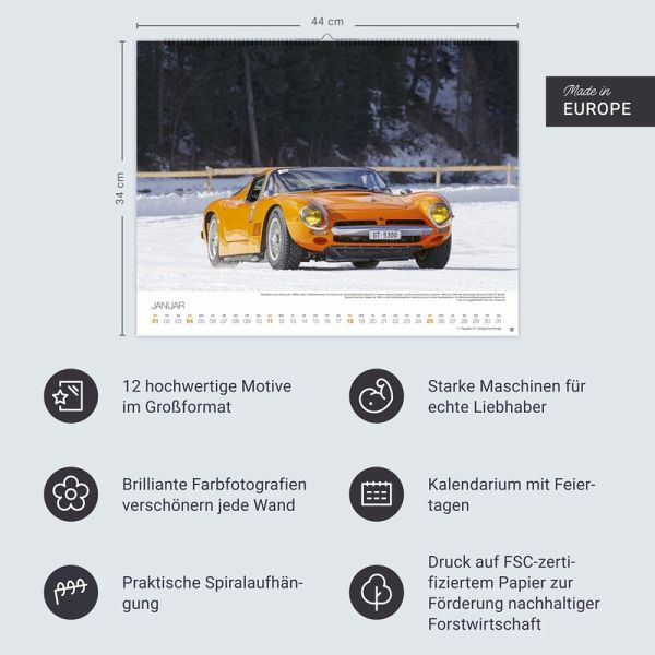 - Zeitlose Legenden auf vier Rädern: Zwölf dieser atemberaubenden Kultfahrwagen, die seit Generationen Träume wecken, verzaubern Sie im Fotokalender 2026- Ein Oldtimer-Kalender, der Automobil-Technik in all ihrer glänzenden Pracht und technischer Vollendung feiert- Traumautos, die die Herzen von Autoenthusiast:innen rasen lassen: Der Posterkalender im Format 44 x 34 cm zeigt sie in ihrer unvergesslichen Schönheit- Bis in die 90er-Jahre: Dieser Foto-Wandkalender 2026 lässt poliertes Chrom und geschwungene Kotflügel der Classic-Cars lebendig werden- Hochwertige Kalender nicht nur für Autoliebhaber und Sammler: Bei Heye im Athesia Kalenderverlag finden Sie das Richtige!