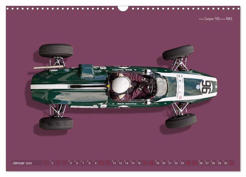 Der besondere Blick aus der Vogelperspektive auf die Rennautos der 50iger und 60iger Jahre sprechen wohl jeden Auto- und Designliebhaber an. So hat man die Einstiegsklasse der Formel-Junior- Fahrzeuge wohl noch nie gesehen. Alle Autos wurden während der Fahrt aufgenommen. Losgelöst vom Asphalt entstanden Artworks, die durch die farblich abgestimmten Hintergründe die Designikonen voll zur Geltung bringen. Dieser qualitativ hochwertige Kalender gehört zur exklusiven CALVENDO Gold-Edition