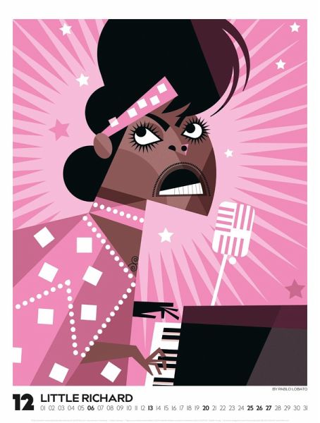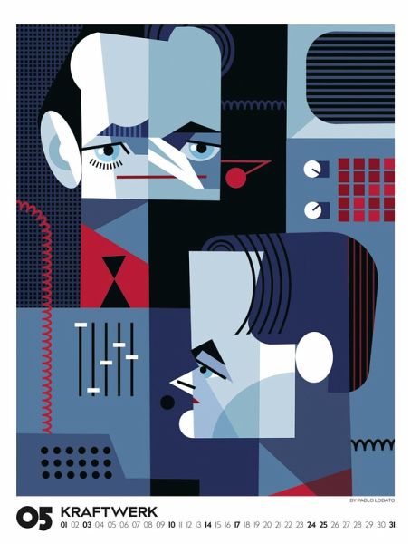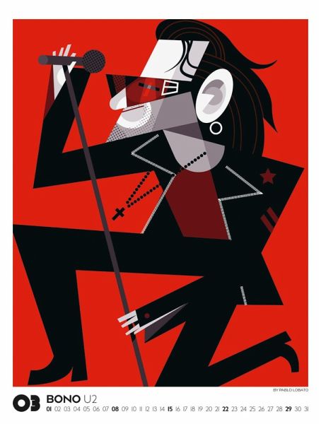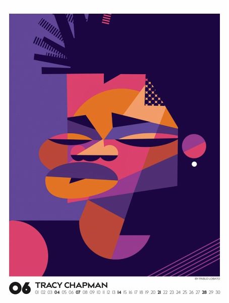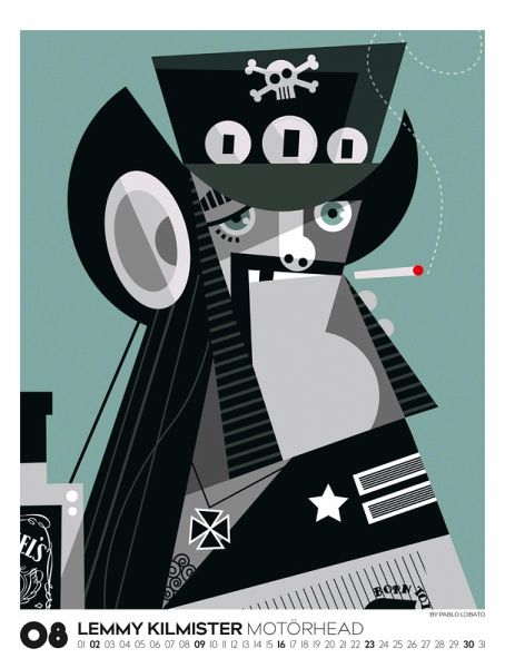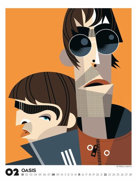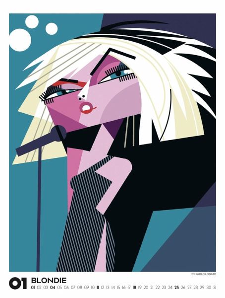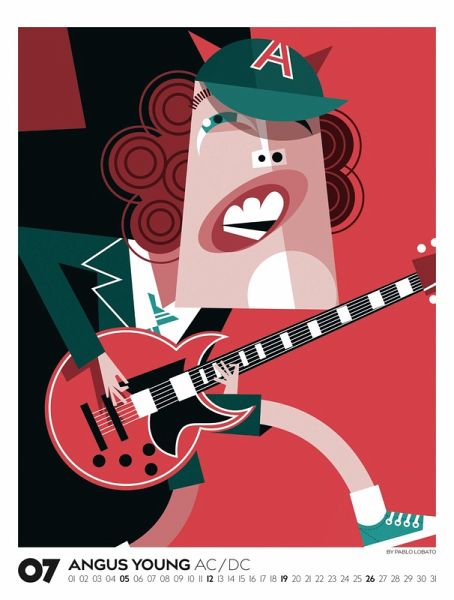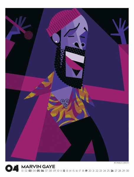 Echte musikalische Schwergewichter in ganz eigenem Look: Der argentinische Illustrator Pablo Lobato porträtiert Ikonen der Pop- und Rockmusik in einem minimalistischen und farbenfrohen Stil. In einer spannenden Mischung aus Pop-Art, Comic und Kubismus gelingt es ihm, mit wenigen Elementen und klarer Linienführung ein Maximum an Mimik und Charakter herauszuarbeiten. Dieses Jahr präsentieren wir eine einzigartige visuelle Kompilation, die Country, Pop, Alternative, Jazz und Blues vereint. Illustrationen von Blondie, Bono und den Beastie Boys, von Marvin Gaye, Tracy Chapman und Little Richard, von Kraftwerk, Oasis und den Beach Boys, von Chrissie Hynde von den Pretenders bis hin zu Angus Young von AC/DC und Lemmy Kilmister von Motörhead. Im großen Posterformat stellt dieser Kalender gleich doppelt guten Geschmack unter Beweis.