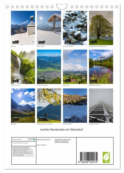 QUALITÄT - Hochwertiger Fotokalender mit 12 wunderschönen Motiven auf lichtbeständigem Bilderdruckpapier, robuste Spiralbindung mit Aufhängebügel.NACHHALTIG - deutliche Abfallreduzierung durch bedarfsgerechte Einzelstückfertigung, umweltfreundliches FSC-zertifiziertes Papier, Produktion in Deutschland, klimabewusste Logistik.PERFEKTES GESCHENK - Kalender für Freunde und Familie, für Kinder und Erwachsene, jung und alt, zu Weihnachten, Geburtstag oder zwischendurch.VIELFALT - Bildkalender in verschiedenen Formaten, z.B. DIN A5, DIN A4, DIN A3 sowie DIN A2. Ob Naturmotiv, Gemälde oder Fotos, ideal für ein persönliches Wohlfühlambiente.Anschauliche Bilder von Wanderzielen rund um Oberstdorf von Autor(in): Walter G. Allgöwer