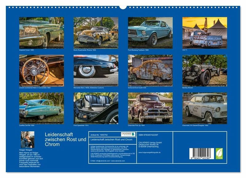 PREMIUM-LINIE - Brillanter Fotokalender mit 12 wunderschönen Motiven, Kunstdruck in Hochglanz in Museumsqualität.QUALITÄT - edle Materialien, stabile Rückwand mit 2 innovativen Einstecktaschen für eine optimale Präsentation an der Wand.NACHHALTIG - deutliche Abfallreduzierung durch bedarfsgerechte Einzelstückfertigung, umweltfreundliches FSC-zertifiziertes Papier, Produktion in Deutschland, klimabewusste Logistik.PERFEKTES GESCHENK - Kalender für Freunde und Familie, für Kinder und Erwachsene, jung und alt, zu Weihnachten, Geburtstag oder zwischendurch.Die Faszination Oldtimer bei den Classic Days Düsseldorf 2022 fotografisch festgehalten. von Autor(in): Holger Weigelt