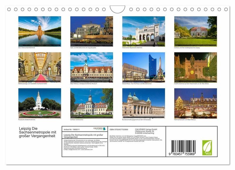 Leipzig ist weltbekannt durch die Messe, ein historisches Schlachtfeld und den berühmten Thomanerchor. Der Kalender zeigt Impressionen dieser schönen Stadt.