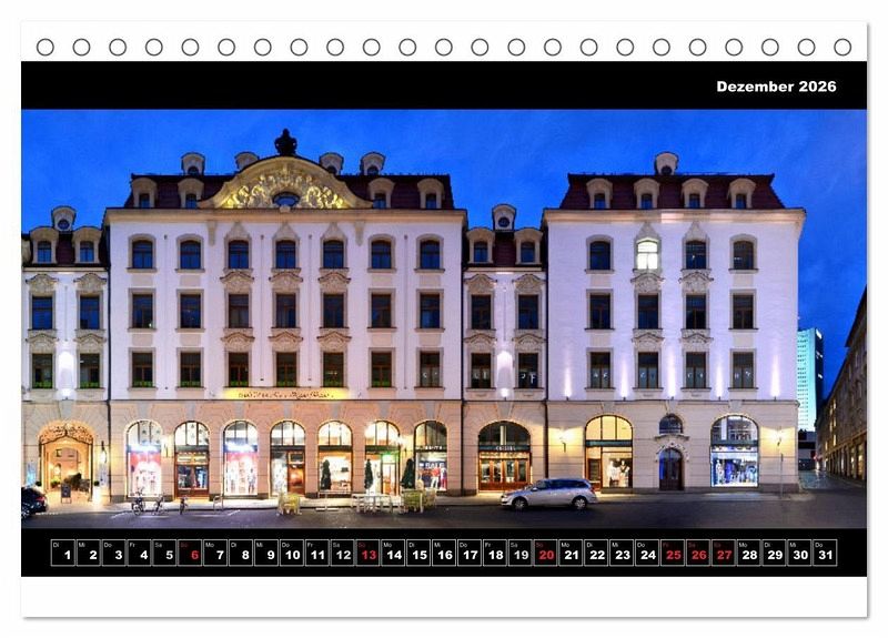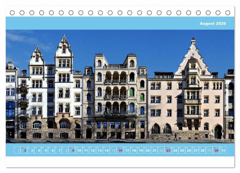 Leipzig zeigt sich in diesem Kalender aus ungewöhnlicher Perspektive. Für die 12 Fotografien von Leipziger Straßen und Gebäuden wurden Aufnahmen von verschiedenen Standorten gemacht und zu einmaligen Ansichten montiert, welche die einzigartige Architektur der sächsischen Metropole auf ungeahnte Weise visualisieren. Leipzig bietet dem Besucher eine sehenswerte Vielfalt und Qualität historischer Bausubstanz. Vor allem aus der Gründerzeit sind hier so viele Bauwerke wie kaum sonst in Deutschland erhalten. Entdecken Sie faszinierende Details ganzer Fassaden oder überraschende Anblicke historischer Straßenzüge. Dabei sind unter anderem das Riquet-Haus mit seinen auffälligen Elefanten-Skulpturen, die Petersstraße, der Dittrichring, der Industriepalast, die in einer Straßenzeile verborgene Katholisch-apostolische Kirche, das Ring-Café, sowie das Städtische Kaufhaus.