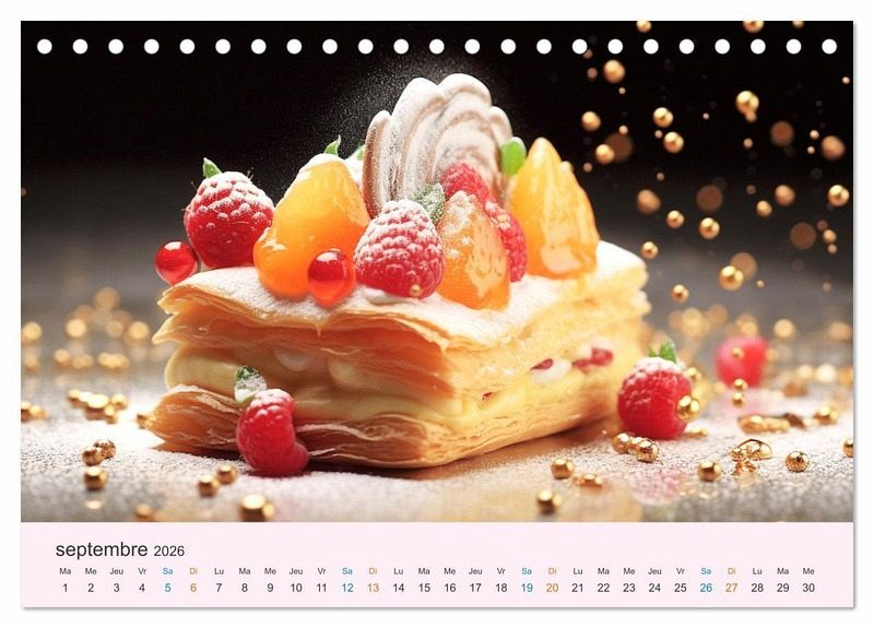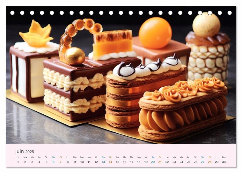 Chaque mois, plongez dans une une expérience gourmande inoubliable, capturant l'art et la passion de la pâtisserie. Chaque image vous transporte dans l'univers des gourmandises, éveillant vos sens et émerveillant vos papilles. Ce calendrier est un voyage gustatif qui égayera votre année.