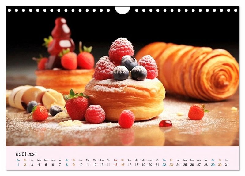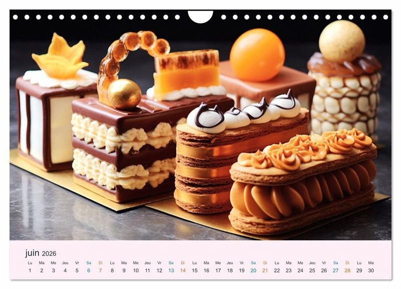 Chaque mois, plongez dans une une expérience gourmande inoubliable, capturant l'art et la passion de la pâtisserie. Chaque image vous transporte dans l'univers des gourmandises, éveillant vos sens et émerveillant vos papilles. Ce calendrier est un voyage gustatif qui égayera votre année.