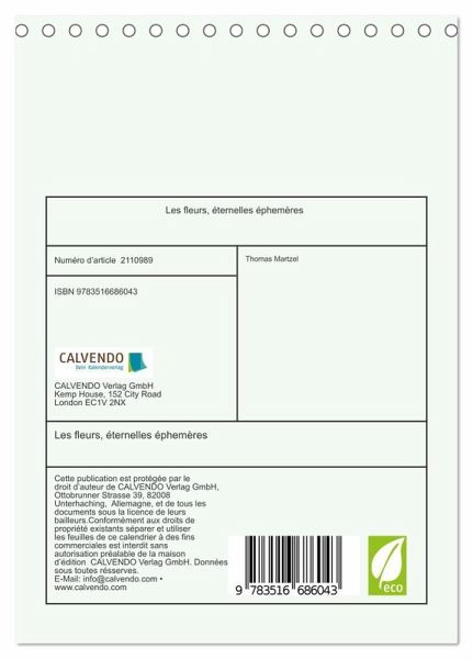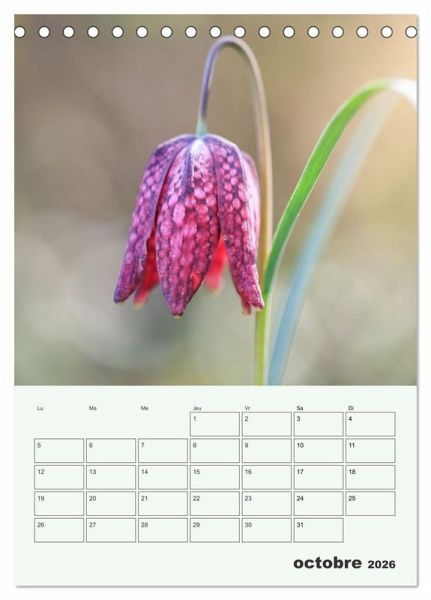 Chaque mois, découvrez la beauté fugace et poétique des fleurs, capturée avec finesse pour révéler leur élégance éphémère et leur délicatesse intemporelle. Ce calendrier transforme vos murs en un espace de contemplation et de sérénité, où chaque image invite à apprécier la magie des instants qui passent. Parfait à offrir ou à s'offrir, il allie esthétisme et praticité, apportant douceur, inspiration et harmonie tout au long de l'année.