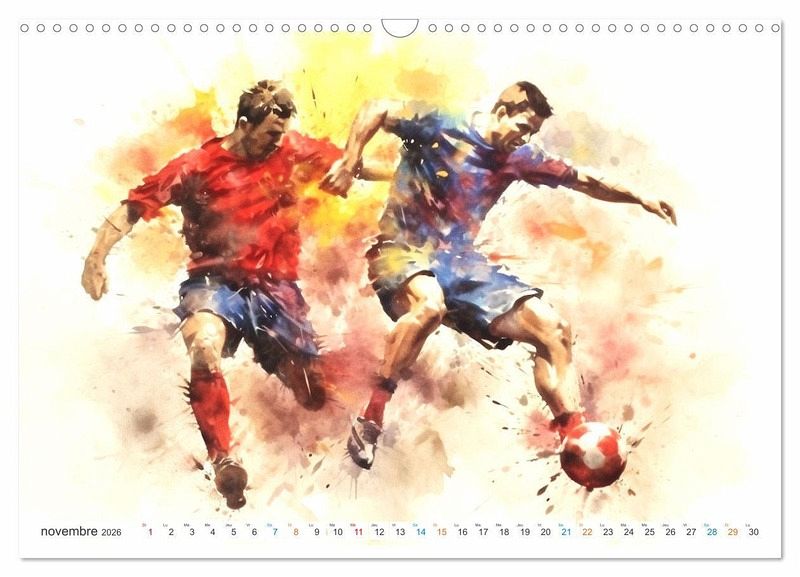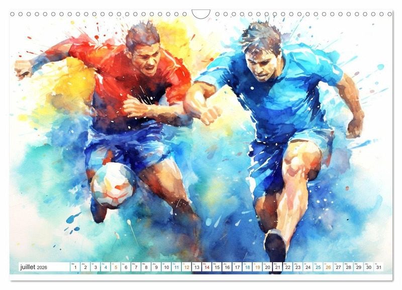 Chaque mois, laissez-vous emporter par la grâce et la puissance des gestes techniques des footballeurs. Des images qui vous transportent au coeur de l'action.Véritable trésor pour les yeux, ces aquarelles sublimeront incontestablement votre intérieur.