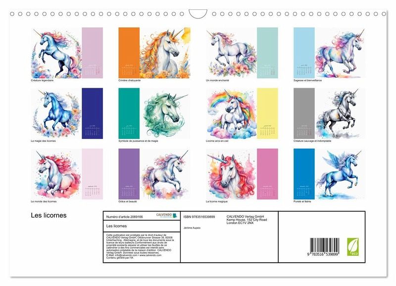 Ce calendrier somptueusement illustré par l'intelligence artificielle présente une collection de magnifiques images mettant en valeur la grâce et la puissance des licornes. Chaque page est une véritable oeuvre d'art, capturant la magie de ces créatures mythiques.Que vous soyez un passionné des licornes, un amoureux de la fantaisie ou simplement à la recherche d'un cadeau unique et magique, notre calendrier sur les licornes est un choix parfait.