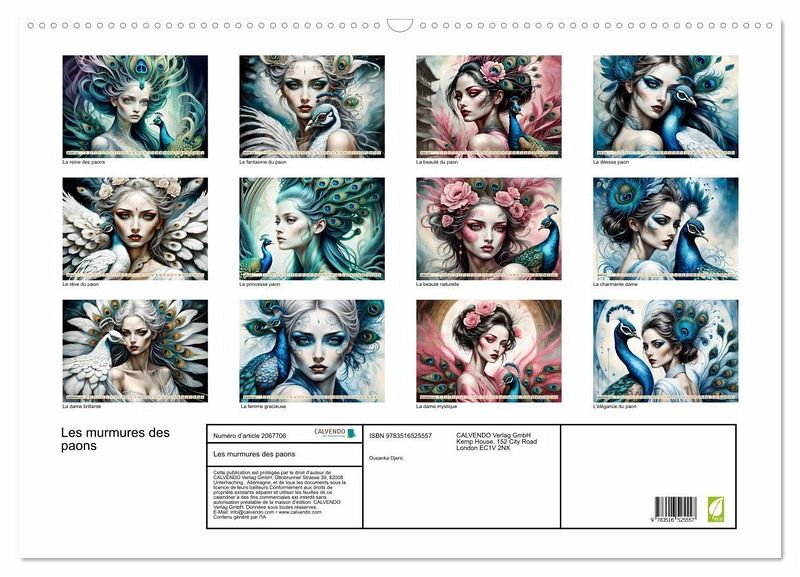 Ce calendrier unique présente la beauté des paons associée à une femme gracieuse. Mois après mois, découvrez la combinaison captivante des magnifiques paons et du charisme envoûtant de la femme. Plongez et laissez-vous emporter dans un monde qui enflamme votre imagination.