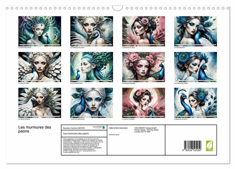 Ce calendrier unique présente la beauté des paons associée à une femme gracieuse. Mois après mois, découvrez la combinaison captivante des magnifiques paons et du charisme envoûtant de la femme. Plongez et laissez-vous emporter dans un monde qui enflamme votre imagination.