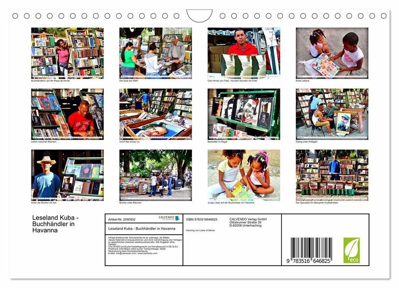 QUALITÄT - Hochwertiger Fotokalender mit 12 wunderschönen Motiven auf lichtbeständigem Bilderdruckpapier, robuste Spiralbindung mit Aufhängebügel.NACHHALTIG - deutliche Abfallreduzierung durch bedarfsgerechte Einzelstückfertigung, umweltfreundliches FSC-zertifiziertes Papier, Produktion in Deutschland, klimabewusste Logistik.PERFEKTES GESCHENK - Kalender für Freunde und Familie, für Kinder und Erwachsene, jung und alt, zu Weihnachten, Geburtstag oder zwischendurch.VIELFALT - Bildkalender in verschiedenen Formaten, z.B. DIN A5, DIN A4, DIN A3 sowie DIN A2. Ob Naturmotiv, Gemälde oder Fotos, ideal für ein persönliches Wohlfühlambiente.Buchhändler, Buchkäufer und Leser in Havanna von Autor(in): Henning von Loewis of Menar